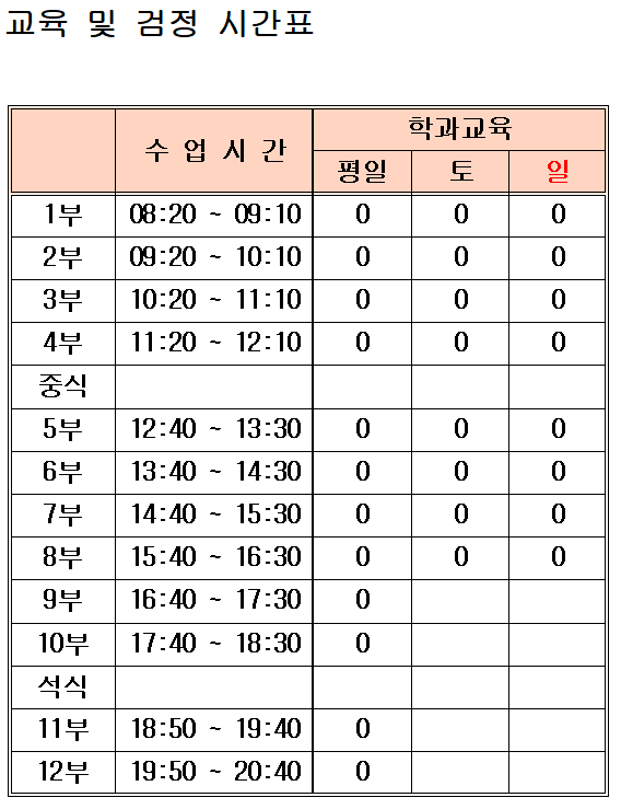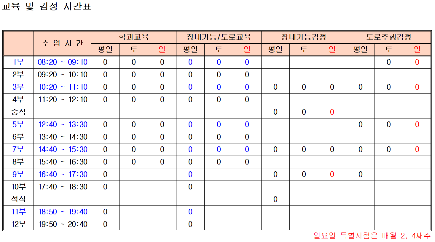 ※장내기능, 도로주행교육 일일 기본 2시간씩 (교육시작 시간은 1부, 3부, 5부, 7부, 9부, 11부 입니다.)